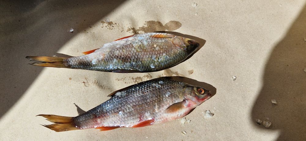 Вимбу засолил, но из последней Чудской две плотвы закинул в морозилку до субботы. Делаю первый раз, вдруг рецепт не понравится и буду сушить как обычно.
