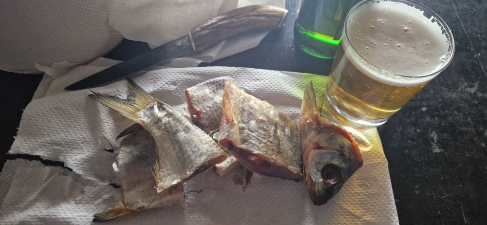 Сижу похмеляюсь, вимба месяц в морозилке -18 и 3 дня под вентилятором, под пивасик залетает и тает во рту, пора заняться крафтовым пивом. Ещё 9 штук вялится.
