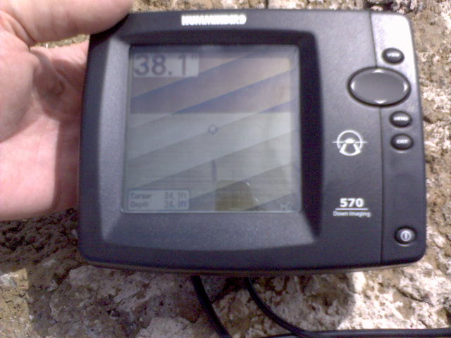 Нашёл ещё картинку - глубина 5,5м. Кто-то предположил что это Pannfish 2-3 фунта, оказалось это Paddlefish 20-30 фунтов. Ну в общем-то картина ясна: