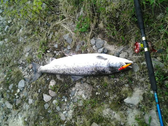 При следующем загибе на местную блесну был поднят лосик более двух кило-ребята уравняли счёт одним махом