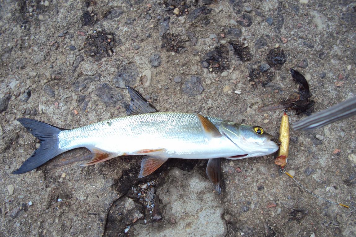 Думал что окунь,подтягиваю ближе - белая рыба.Ну и дела.Жерех.Ну не то чтобы прямо жерех