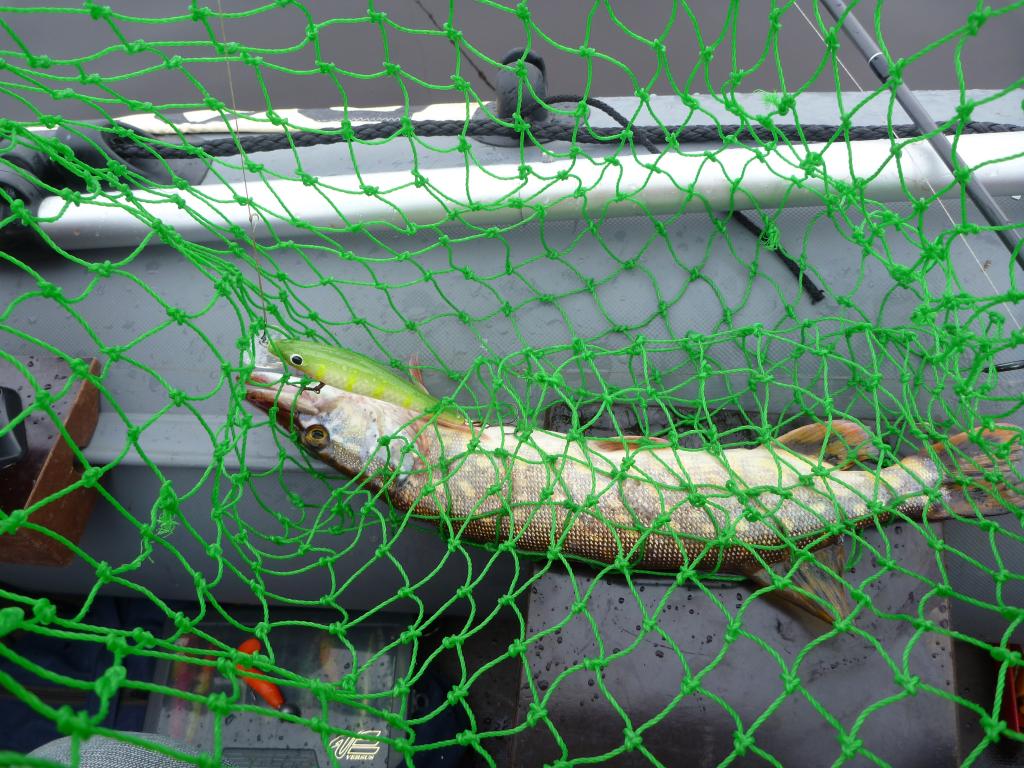 Но на 2 месяца со счуками у меня завязка. При наличие лодки с мотором да правильных - подобранных к текущей ситуации воблеров это вообще получается каким-то конвейерным промыслом, а не рыбалкой. В следующий раз второй спин при троллинге в найденном косяке буду на хрен убирать...