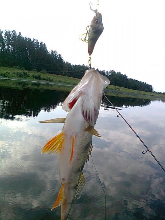 Скорее всего съесть он хотел именно крючок, как отдельный от воблера элемент. Мне попадались экземпляры еще меньше.vdv писал(а):одного понять не могу, как он планировал разместить эту еду в желудке?