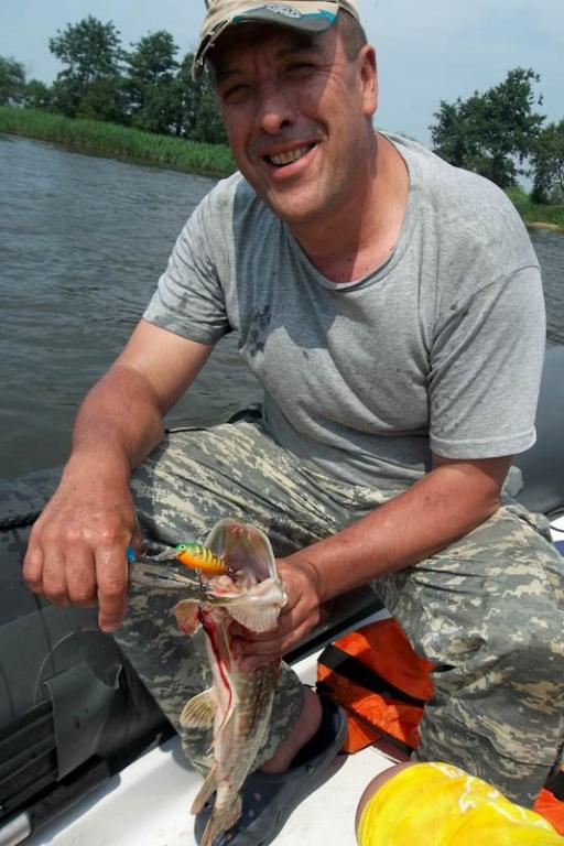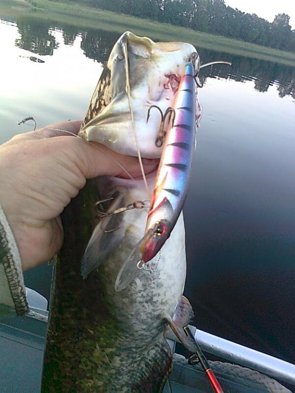 И на этот же воблерок попался речной корсар , на 4, 200кг