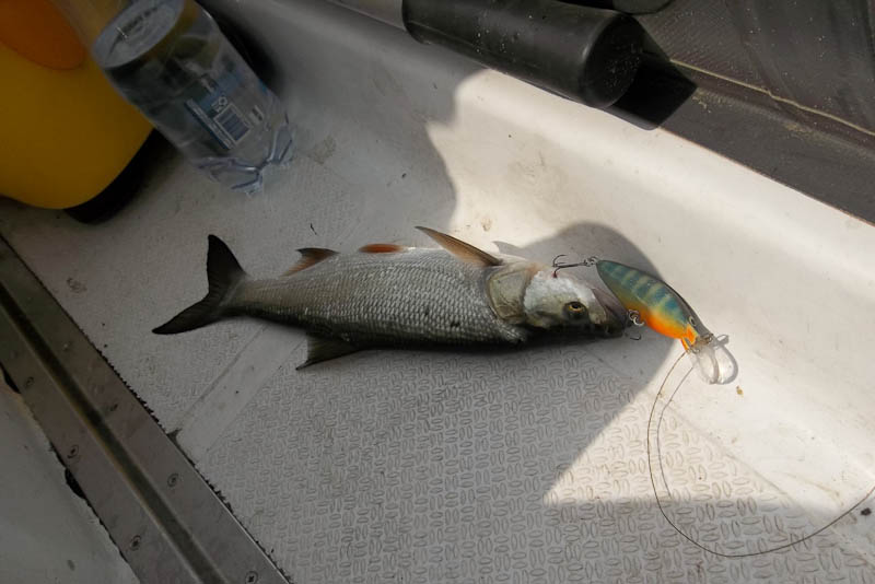Хм. Похоже, правильно выбранный воблер поможет хотя бы "уйти от нуля". Снова ясный день, снова не брала ни на что. А на этот не очень казистый польстились сразу две. Одна согласилась позировать:
