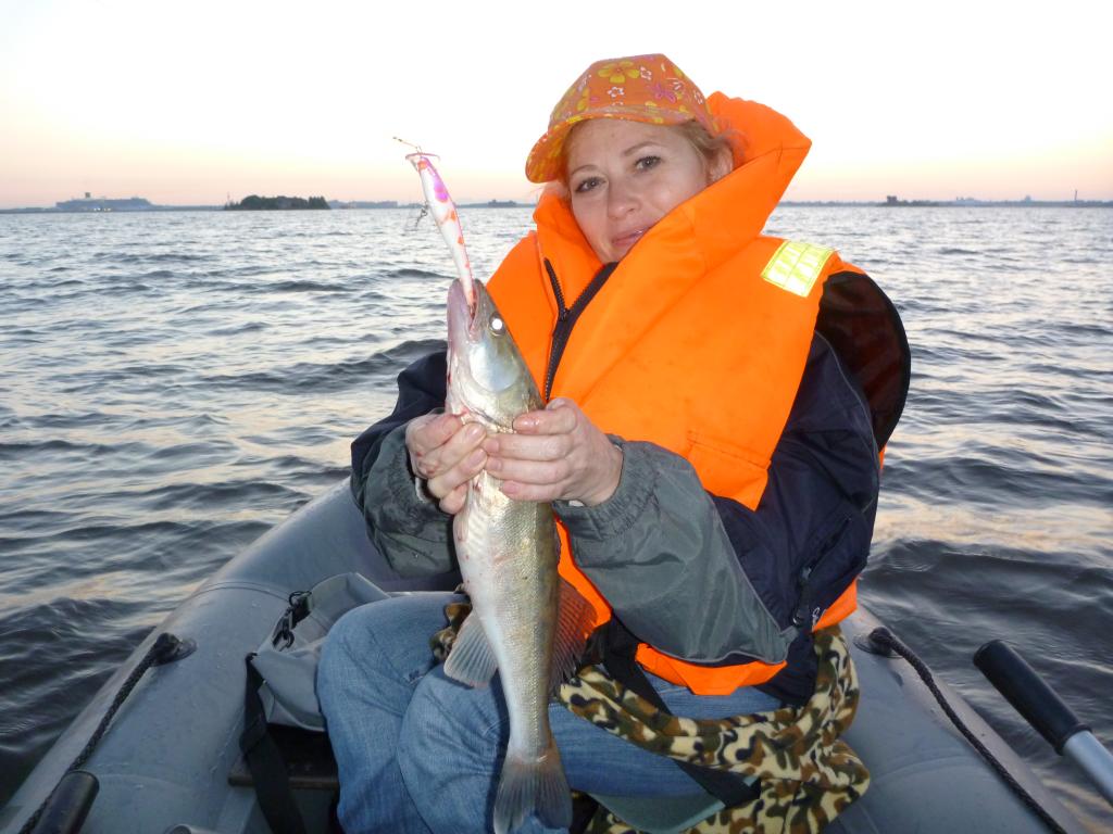 В общем решили идти. Волна приличная, для лёгкой лодочки, но ходить можно. С первых метров любимую стало укачивать - вот думаю встрял... Естественно у неё стоит "гламурный", а я перебираю всё подрят - ищу спасительной расцветки... Ведь действительно не клюёт... Через час супругу укачало в конец, мы решили не портить