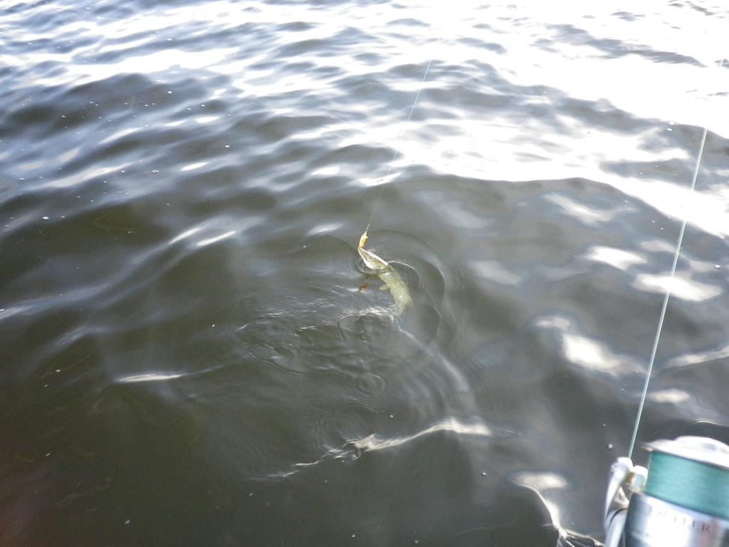 Сегодня после обеда отметились на заливе. После шторма вода мутная, рыба попряталась. Мне попалась одна зачетная щучка, у напарника пару небольших, естественно, плавают дальше и колюшка, хапнувшая слайдера