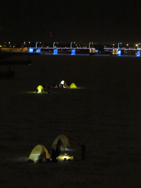 Это алчные литофские парни! Весь день они жрут алычу а ночью алчут рыбы. Понавезут генераторофф и плющат корюху под самым льдом в свете прожекторофф. Потом до дому и рыбу на продажу. У них до четырёх наших латов за килограмм получаеться....