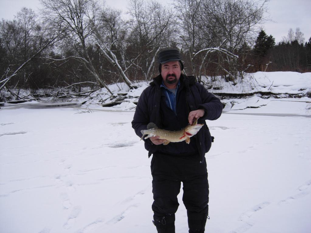 Ледобур легко преодолевает не толстый лёд и десяток лунок готовы,остаётся их проверить,но как и вчера - ноль.Ещё десяток лунок и на девятой на блесне приятная тяжесть,недолгая борьба и щучка на полтора килограмма на льду,вся в пиявках.На воодушевлении ещё одна строчка лунок и на третьей опять поклёвка,на сей раз чуть меньше кило,руки уже не дрожат как после первой.Через пару лунок ещё одна под килограмм,на этом и всё.