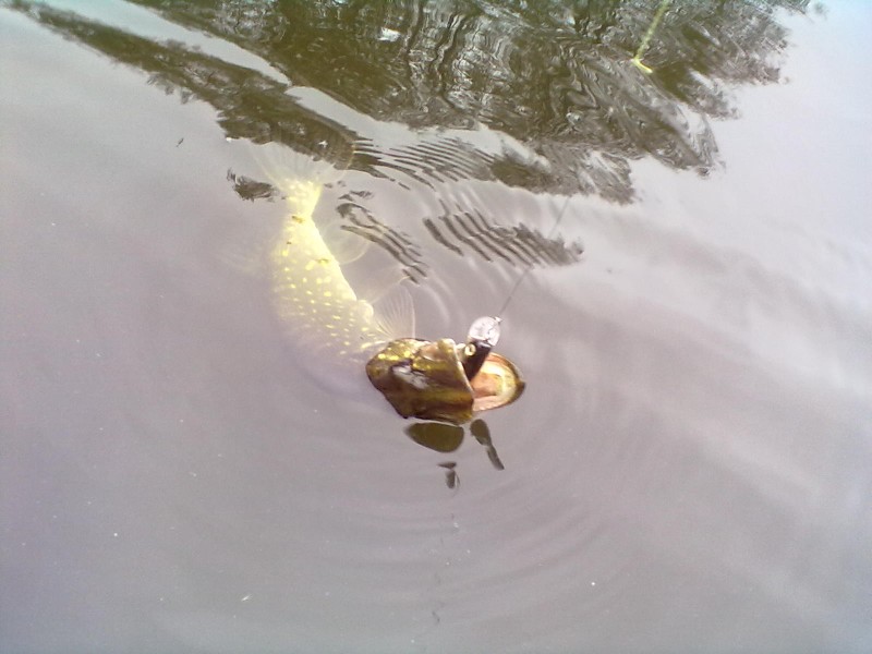 На другом, глубоком пруду щуку просто не нашел прочесав воду по всем горизонтам с одного берега (с другого случаются лишь единичные поклевки, очень-очень редко, но зато больших щук). Чувствую себя полным идиотом - хоть переходи на ловлю лососей... в гипермаркете, на бумажник клюют всегда.