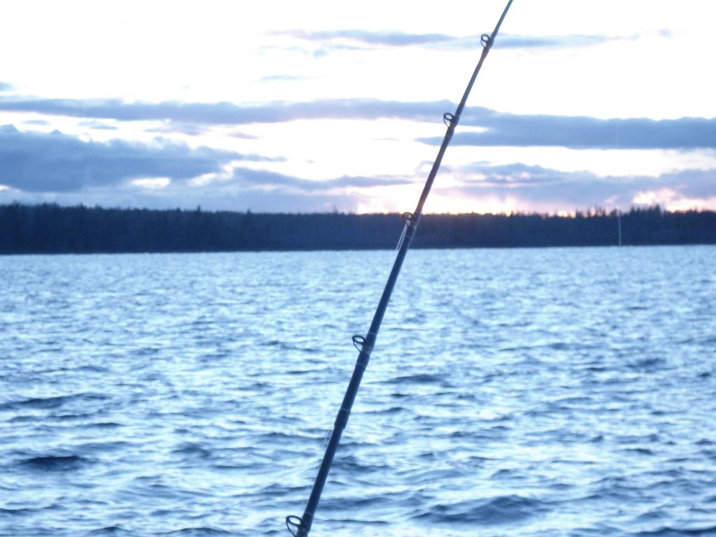Погода сегодня порадовала, с клёвом как-то не очень. Редкие и в основном холостые загибы происходили на крупные приманки кислотных расцветок. На "ОК"14 см.- расцветки "клоун" обидно упустил монстера у лодки...