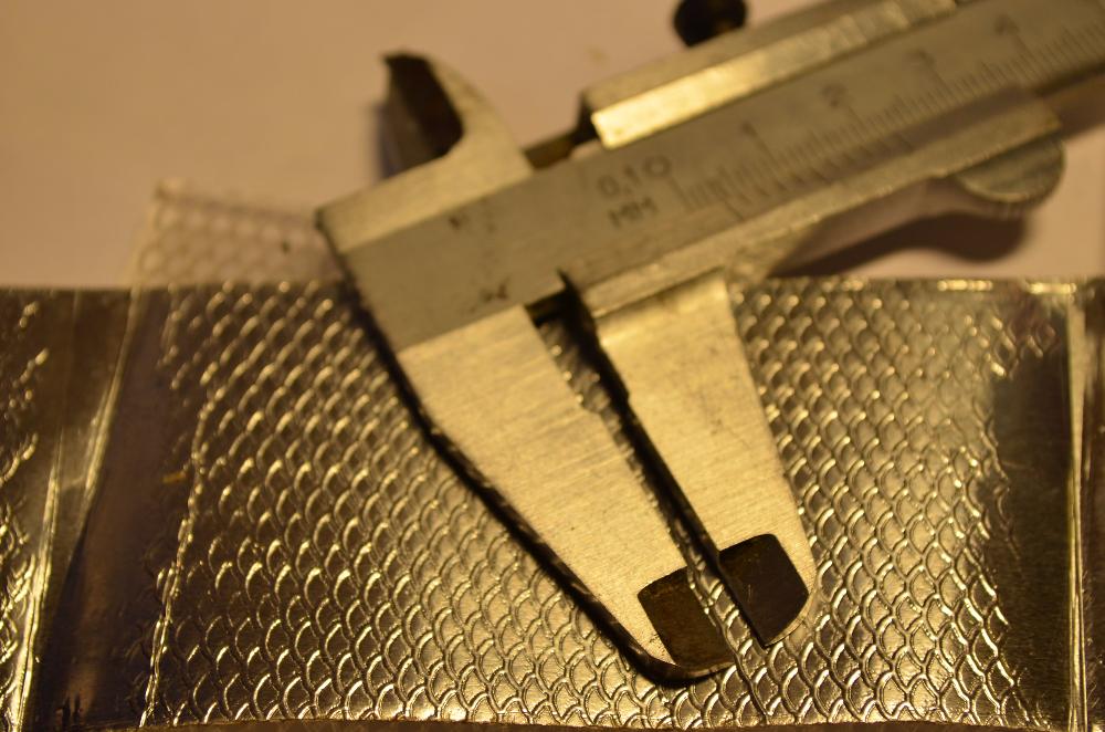 Сегодня попробовал сделать накатку для фольги. Больше рисовал чем делал. Материал оргстекло, но можно и другой пластик использовать. Размеры чешуи можно делать разные, так же как и глубину прорези.