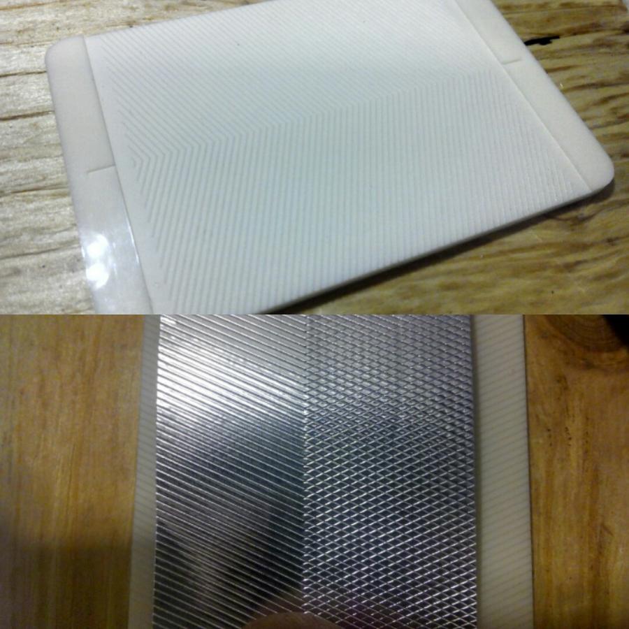 ЧПУ?Garik писал(а):Сегодня попробовал сделать накатку для фольги. Больше рисовал чем делал. Материал оргстекло, но можно и другой пластик использовать. Размеры чешуи можно делать разные, так же как и глубину прорези.