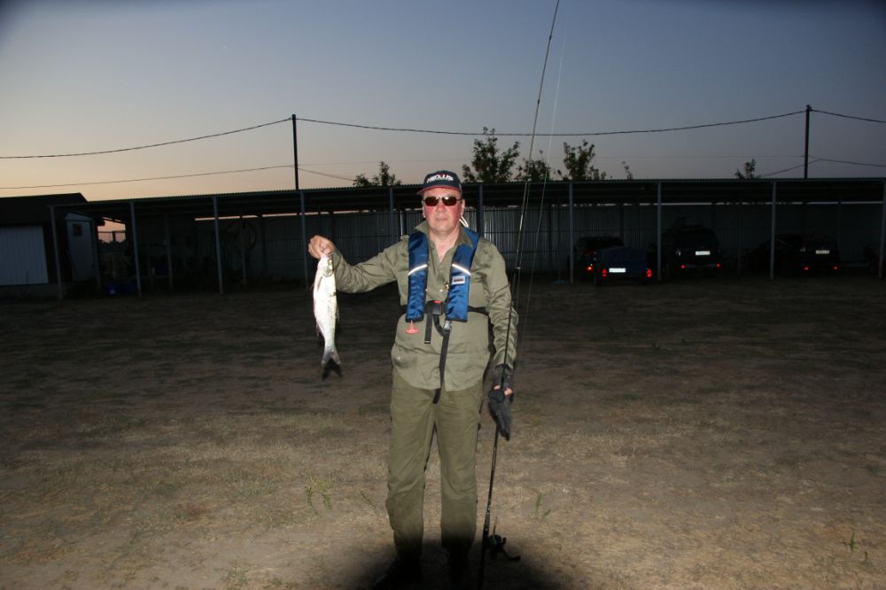 На подъезде к Каралату нас встретил Алексей Комаров, познакомил с егерем Юрой. Нужно отметить, что принимающая сторона выполнила все заявленные на своем сайте обязательства и быстро помогала в решении возникающих мелких проблем. Погода начала огорчать с самого начала, загрузившись в лодки мы тронулись на место нашей стоянки, сразу поднялся сильный ветер, приходилось идти на лодках вдоль камышей. Добравшись на место, загрузив вещи в плавдомик, сразу же отправились рыбачить. На вопрос егеря куда поедем, ответ однозначный – раскаты. Подъехали на место начинаем бросать, дует ветер и временами капает дождь. Заброса с пятого Дима взял жабку на «профессора» с защищенным двойником.