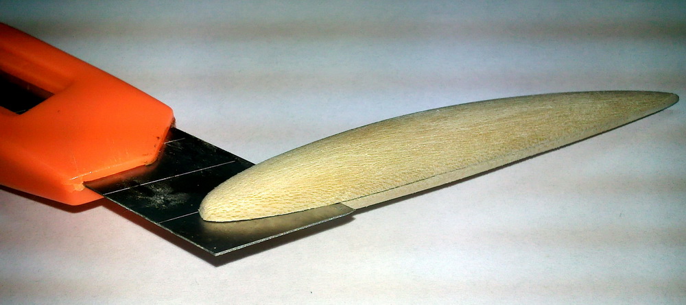 5. Делаем пропил под лопасть и обтачиваем остальные поверхности. Я пропил сделать сразу забыл и потом пилил заготовку зажав её в тиски между двумя кусками пенопласта.