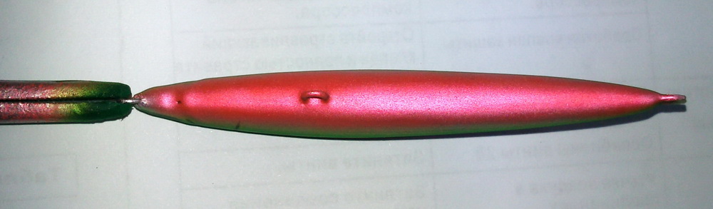 16. Потом наносим точки вдоль тела воблера. Для этого можно использовать любой заостренный предмет: чертилку по металлу, гвоздь, отслужившую глеевую ручку и др.