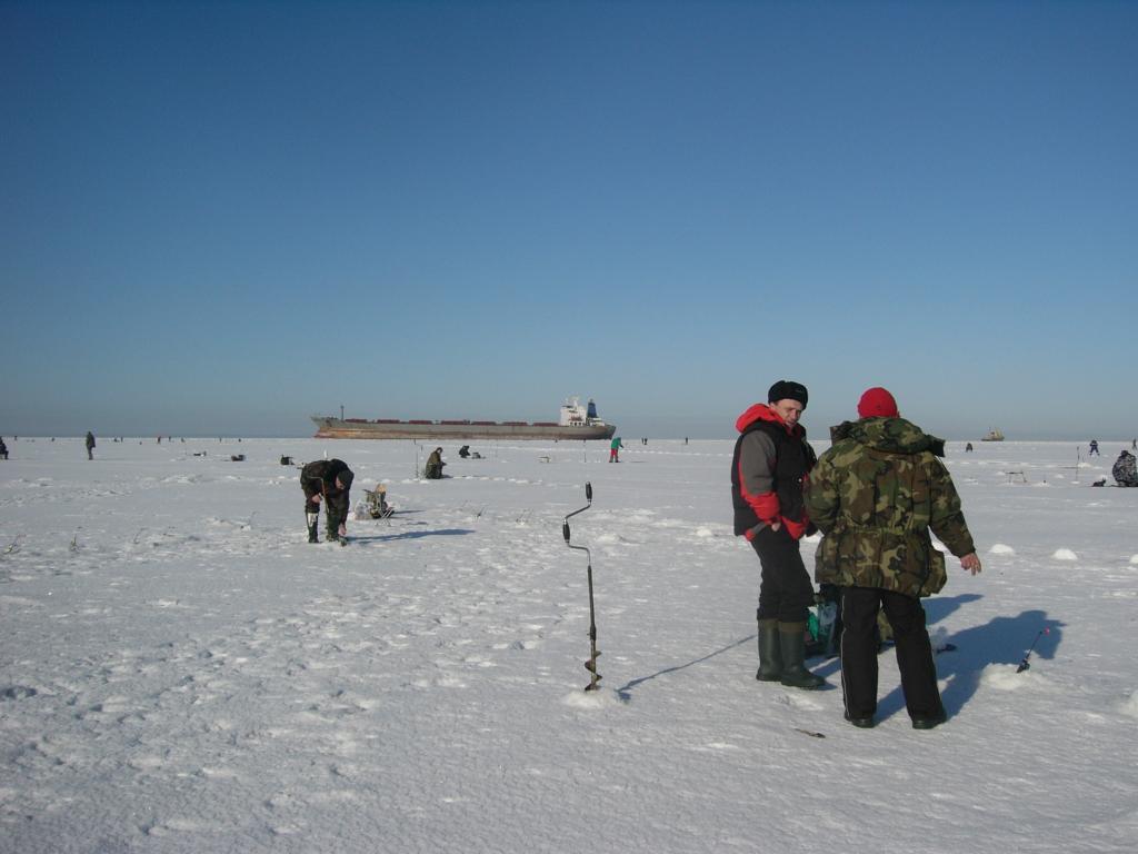 Совершенно отчаянные люди залезли в торосы. Правда клевало у них намного лучше, чем у всех остальных.