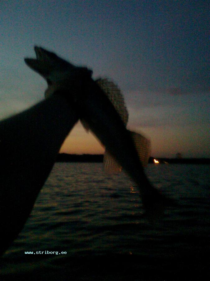 Выбрался я на судака. Выходил на весельной старой, но еще вполне надежной резинке. Ловил с 9 вечера до 2 ночи. Лодок было очень много. Некоторые вытаскивали судачков. У меня с 9 до 12.30 поклевок вообще не было. Перепробывал различные воблеры, и расцветки. Судак начал брать только на серебристые воблеры с заглублением 3-3,5 метра. Всего я взял 3 штуки ( 1,2; 750; 450 гр.). И еще два сошли около лодки. Один из которых был явно за кило.