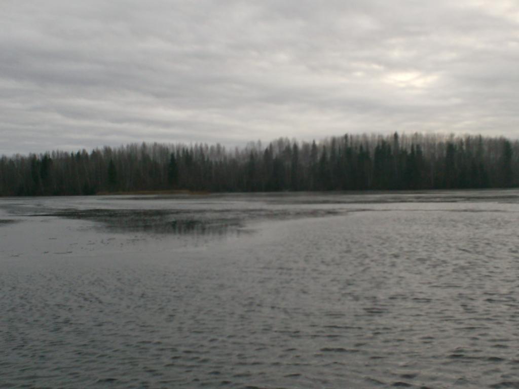 Позвонив на базу в обед,на вопрос:смогу ли выйти на лодке?-В ответ услыхал:лёд,но выйти можно.Как то неуверенно эти слова прозвучали.Подъехал в третьем часу пополудни и улицезрел картину:(некоторые фоты не проходят) К слову сказать две лодки стояли на приличном удалении от берега(стояли на яме),молодцы ребята,видно пробивая от полыньи к полыньи проход добрались до нужного места.Я пошёл по их следам,не так то и просто,они прошли на моторчиках,а вёслами особо не размашешься,да и лёд такой,что впору пёхом топать.А начинал мешкаться,ветер гнал лодку обратно к берегу.Пришлось плыть задом вперёд На этом месте и решил тормознуться.Ну не клювало,эт у меня обычное явление,ничего удивительного,и у меня глубина казала восемь метров.Стемнело,ветер со льдом затянули мотив,в котором перемешивались,звон стекла,с гомоном гусиных стай;что-то средне между этим.Как то потихоньку,стало неслышно льда,ветер же не стихал,как бы не начало нести его.Что-то не так,пригляделся а он уже и плывёт,и в лодку начало постукивать,и рябь,местами стала пропадать.Ясненько надоть быстренько сматываться.Как обычно чутка не успел.То место прошёл лётом,где еле пропалзал,а вот к берегу пришлось пробиваться сквозь ледовую кашу,мал-мала попател.Но всё хорошо,что хорошо кончается.