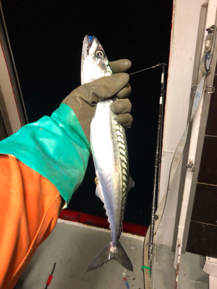 Стоим под Ставангером, район Гродхеим. Вечером покидал немного с борта. Снасть классическая - гирлянда с пилкером. Удалось взять несколько скумбрий и морского черта.