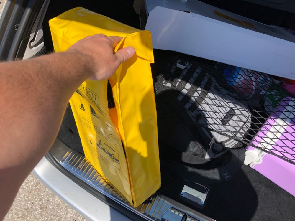 Далее был куплен комплект МОВ. Размеры у него конечно не маленькие, но под стойку пассажира он легко зашёл и оказался за аккумом. Следовательно места в рундуках не отнял.