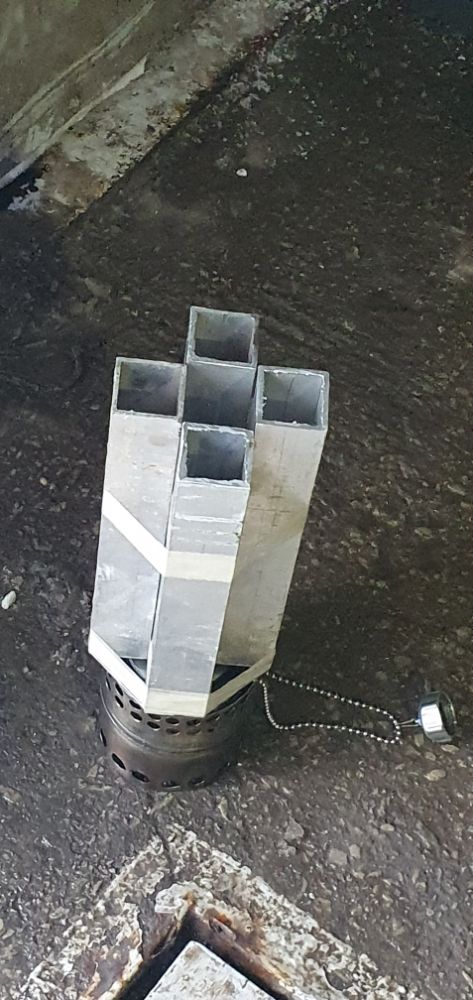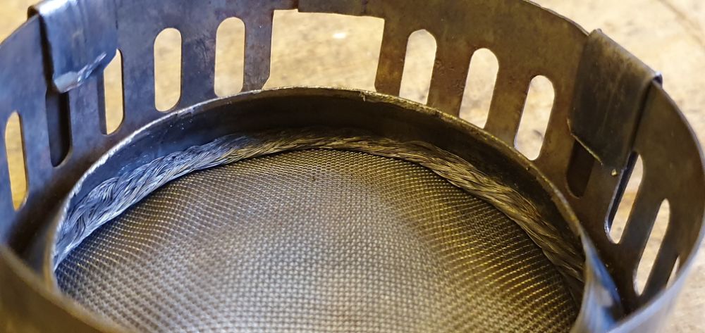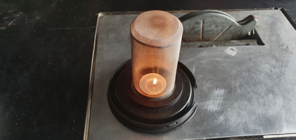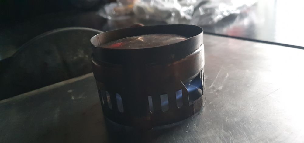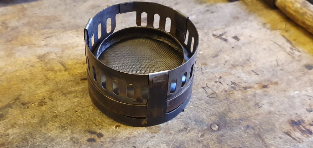 Банку из под конфет DROPS я переделал, убрал верх, натолкал биокаминной ваты и поставил сетку из нержавейки,