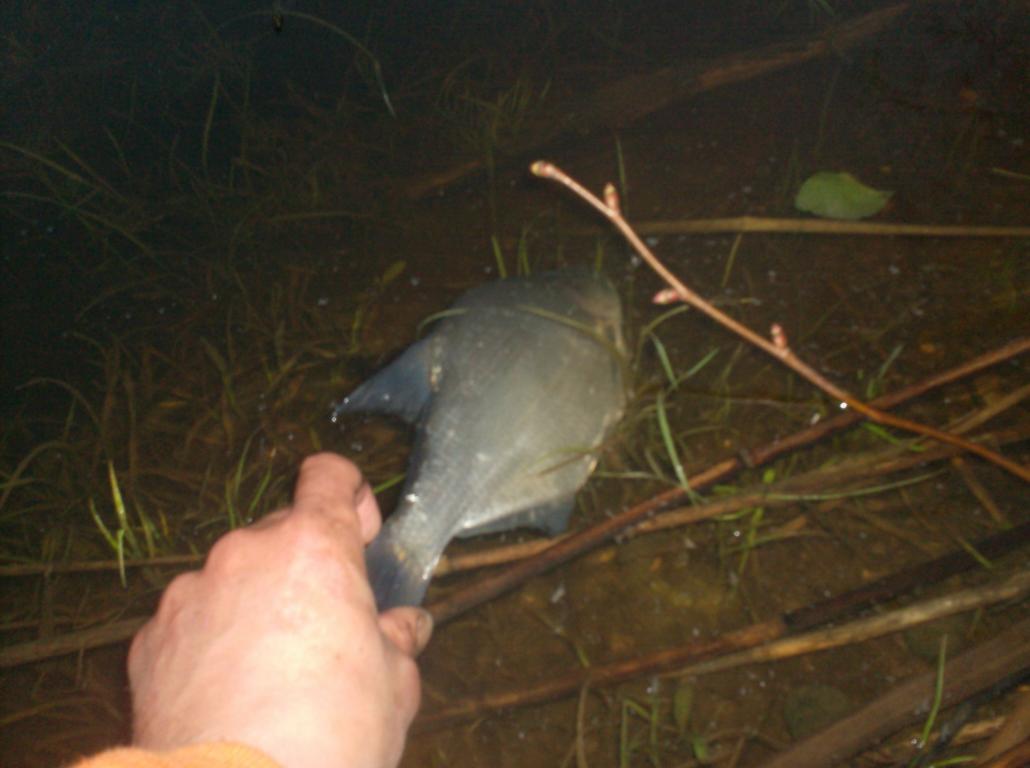 Вернёмся к самой рыбалке.А вот тут не так весело.Продолжается игра в:поймал-отпусти.И ни чего не могу поделать.На удочку вооще оказалось-пришлось отказатся,трудно сказать,успевал ли крючёк до дна опускаться,или же наживку начинали рвать на части ещё на лету.На фидер тоже было не весело:заброс,тырк-тырк,и два варианта,либо крючёк уже гол,либо там уже повесился очердной камикадзе.Из более менее рыбов три подлеца за весь вечер Но нужен был лещ.Варианты насадок:кукуруза,навозники,сметалось враз мелочёвкой;опариков особо ни кто не жаловал,но глодали до кучи.Выползки,выдерживали какое-то время,но трудно ждать,когда не знаешь,есть ли ещё что на крюке,либо там опять надо кого-то спасать.Начинало смеркаться,послышалось:Мяу,на два голоса,и действительно гости пожаловали а я тока все бутики умял.Правда был ещё хлеб,предложил,не отказались.Хлеб кончился,подошли ещё гости,пять насчитал,пришлось расправлять удочку,ну и пока ещё чего то видать,подловил им на закусь.Совсем стемнело,собрался,пошёл покимарить,с надеждой на утро...