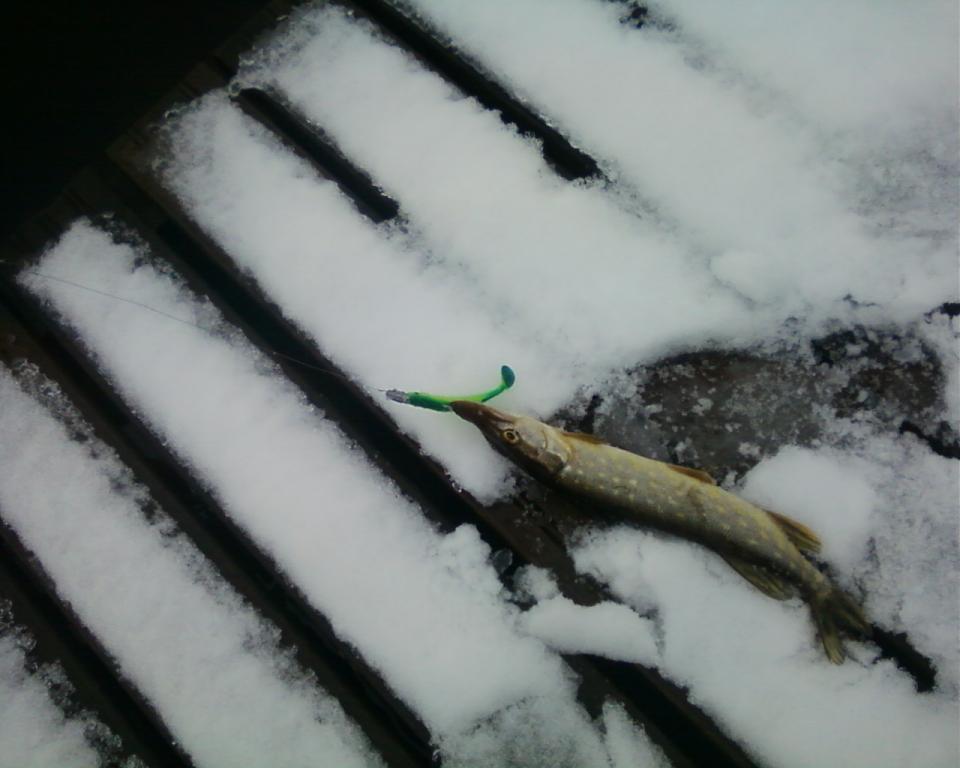(неделю назад уезжал-Я ловил, приезжает снова-Я ловлю) и чё-то чешет мне на своём диалекте, а я ему на своём, он меня не понимает , я его.В общем поболтали каждый о своём, а щупакабр нету, спустился чуть пониже и опять после четырёх часов взял с одной точки пять щучек в размере