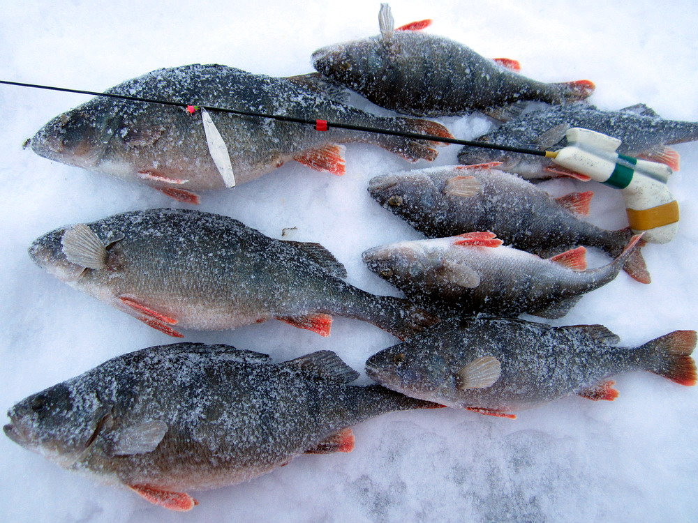 в лунку и моментальная поклёвка, а окуни от 400гр. и выше, короче набил я тогда полный ящик отборных окуней, радости