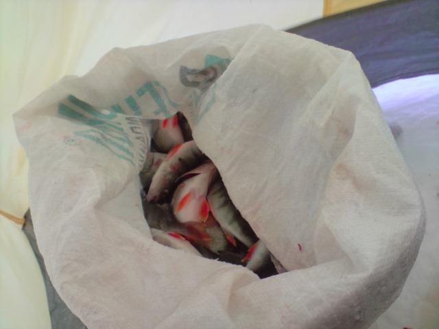 Единственное уточнение - у меня так рыбы намного меьше было поймано, перепробовал половину запаса секух, но начал ловить только на мормышку. Ну и товарищ мой заходил в палатку погреться и перекусить. Так время и пролетело. Размер рыбок радовал, пойду закопчу, а ушица из ерша и голов окуневых должна быть просто супер.