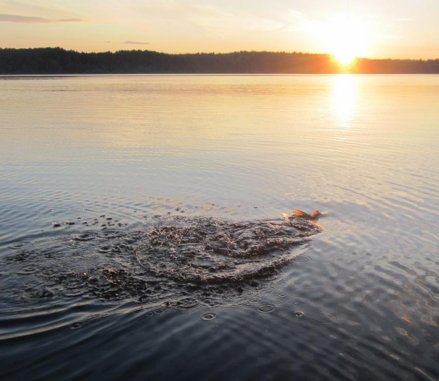 Вчерась после гроз прокатился на озерцо, на вечернюю зорьку. Часа 3 катался троллингом - посасывал без единого удара. Чуть было не заснул на румпеле... Пытался твичить в куширях - аналогично. На вечерней зорьке, на дорожку практически подряд три хвоста на чёрно-зелёную расцветку шеда-7. Последнюю - трёху в процессе сфоткал. Новому поводку из титана (Ponton) малёха досталось, но он прям как тот дедушка Ленин, - оказался живее всех живых!