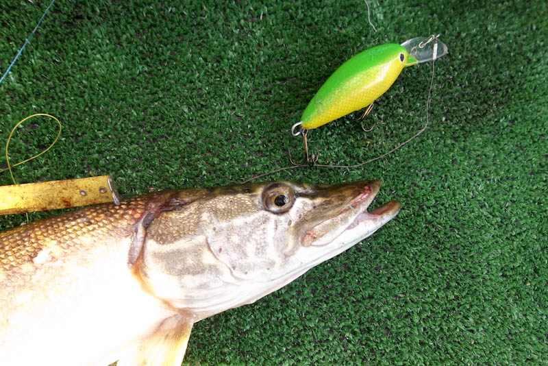 Разловил таки сегодня этого Микки Мауса щучкой на 2.5 кг, что по меркам наших озер трофейная рыба. Жаль что фотоаппарата не было, да и снять бы на видео как я ее вытаскивал, это была не рыба а пук травы. . Кроулер получился тяжелый, летит как пуля, киданул я его подальше виду просто равномерно вдруг бурун и нет его.