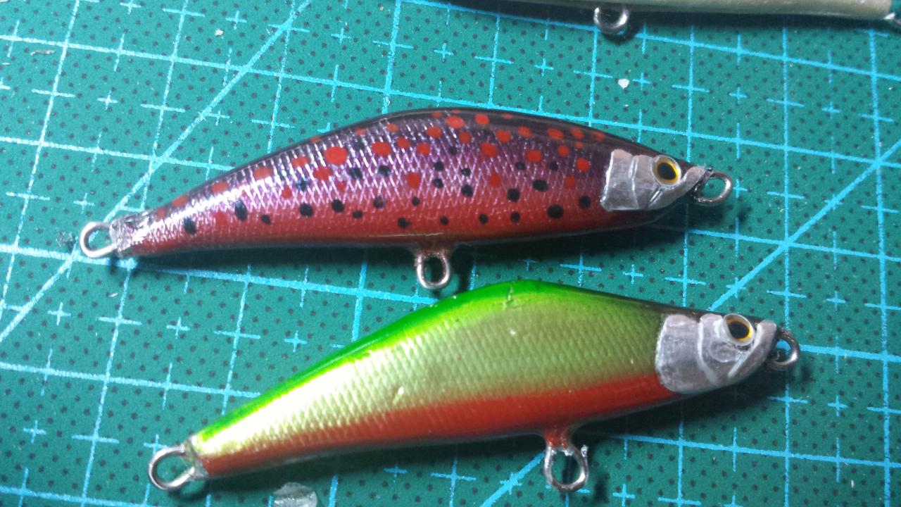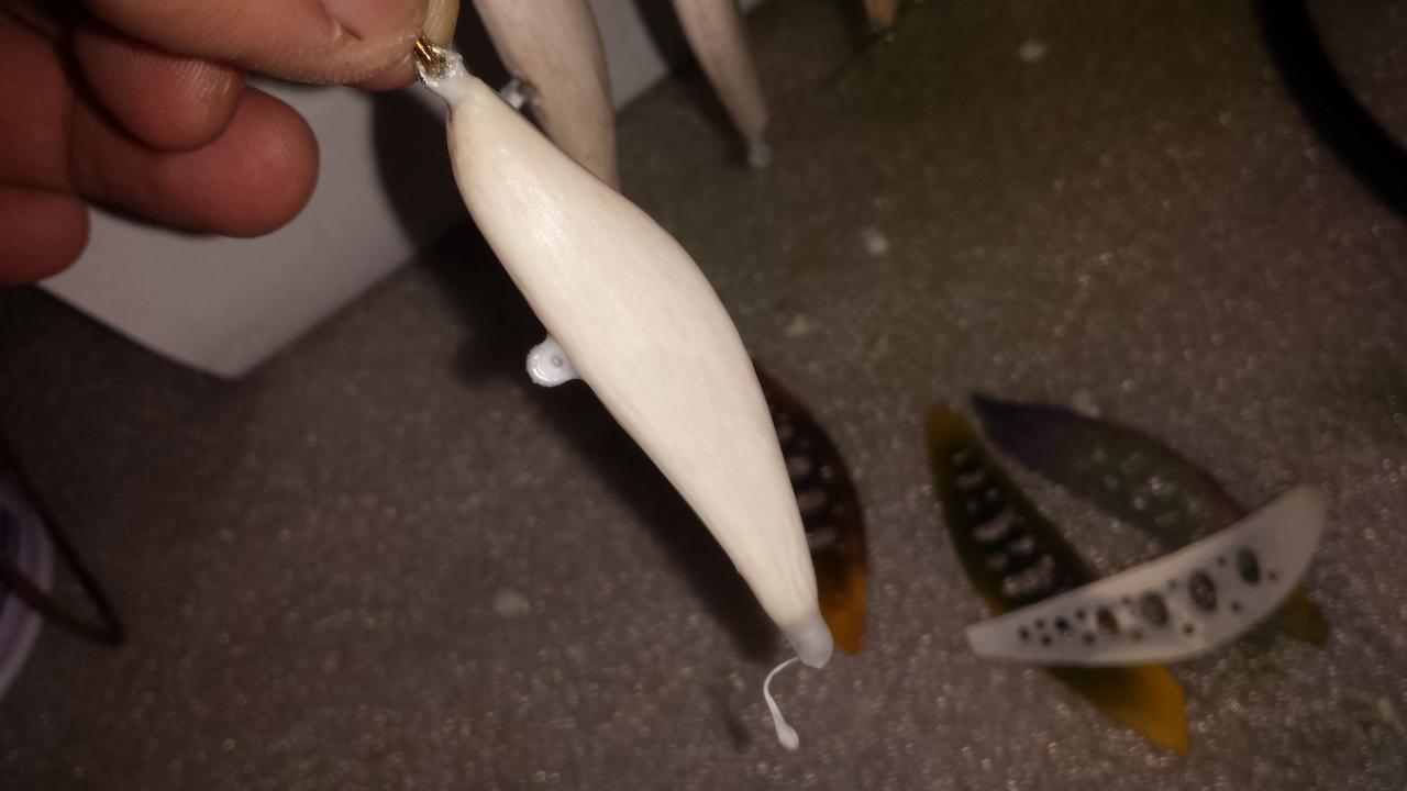 Аэрограф и краски тоже есть, купил гранулы ацетата целлюлозы в ацетоне растворились сразу, в растворителе 20 дней и нет результата пока. Финишный слой негоден изза белых пятен , не спасла даже камера для сушки, окунание в растворитель, ацетон тоже самое - результат повторяется. Пробовал разные производители ацетона и растворителя, которые доступны в моем регионе (Чеченская Республика). Эксперементировал и с добавлением растворителя в густо-разбавленный ацетоном лак - результат: полное покрытие белым слоем. Отлично получается финишные слои лака из автолака (какой то Германский лак) название не помню, но с ним долго работать, сушится больше сутки и 48 часов до полного высыхания. Краски использую водно-дисперсионные для аэрографии от ExMix.ru. Каркас из ортодонтической проволоки 0.8мм (на мой взгляд толстоват для приманок 35-60мм). Накатка для фольги тоже сделана на заказ, кому интересно, напишите в личку, отвечу как станет доступны личные сообщения. В целом все описал из чего делаю и пробую. Попробую загрузить фото с телефона, не судите строго, я новичек и пришел к вам за опытом и советами.