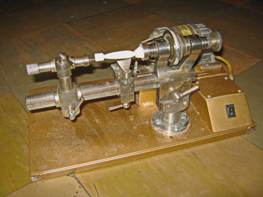 Привел в порядок малюсенький токарник, надоело в тиски зажимать и все настраивать. Надо только в заднюю бабку маленький вращающийся центр придумать. Приводной ремень - веревка с легка сваренная концами и соединение прошиты нитками, держит и не проскальзывает, пока пусть будет так...