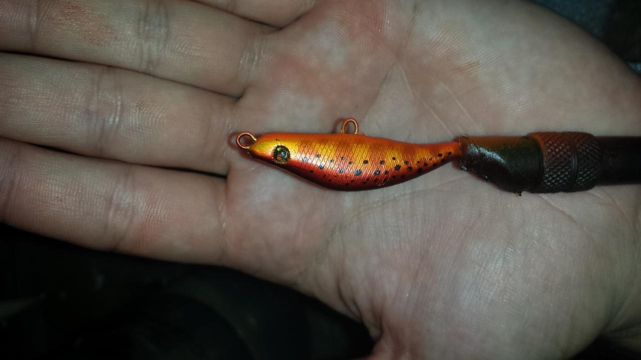 Решил покрасить покрытые фольгой воблера, перед покраской прошелся ацетоном по фольге для обезжиривания и повесил все 8 воблеров. Отошел на 5 мин, а когда пришел, мои воблера побелевшие. Результат реакции алюминия и ацетона, прошелся тряпкой, убрал белый слой, покрасил сплошной цвет по и окунул в ацетат, результат удивил. Практически идиальный финиш.
