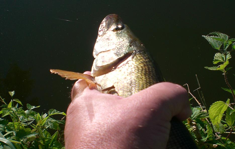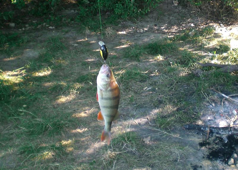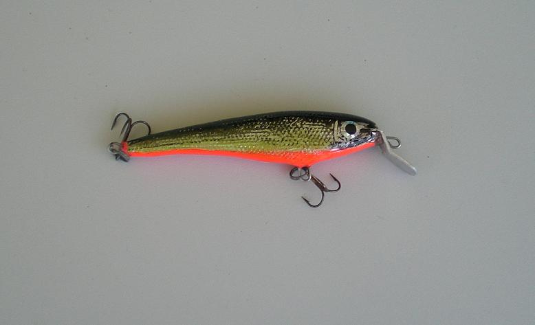 Надо сказать, что поймать рыбу даже не надеялся, так как был очень яркий день, вода прозрак, да и 12:30 на часах - полдень. Участок реки до сей поры был для меня незнакомым, слепни приняли меня тоже, как незнакомца - атаковали со всех сторон, пока я не попшыкался средством. Спустившись по крутому берегу к холодному потоку, начал высматривать удобное место для тестирования. Слева от меня (вниз по течению) увидел расширение русла и судя по всему довольно глубокую яму. Цепляю воблер без карабинчика на лесу и делаю заброс. Ультралайтовая Abu-шка Vendetta, в сочетании с катушкой Mitchell Mag Pro Lite 500 с матчевой шпулей, без труда посылают 2 грамма приманки на другую сторону ямы, обходя нависшие над потоком еловые ветви. Вроде воблер пошел активно, ровно - даже кольцо гнуть не надо, но явно маловато огружен, такое чувство появилось на первой проводке. Но на пол-дистанции я вижу, как с придонной области отделилась "торпеда" и не успел я опомниться, как спиннинг согнуло в дугу и завизжал фрекцион. Я начал работать как руками, так и сердцем