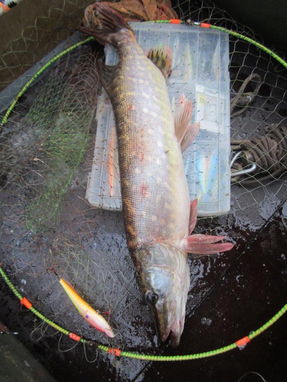 Момент щекотливый: места мало для маневра, если не сдавать лесу (0,18мм) рыбе, то она не выдержит, если сдать лесу, то и берега (вниз по течению) лежит под водой упавшее дерево, за которое рыба может вполне уйти и будет непоправимое. Решаю быстро ослабить еще немного фрекцион и постоянно крутя катушку утомлять рыбу в 2-3 метрах от себя. Борьба длилась относительно не долго (к счастью), но при вытаскивании рыбы на берег рвется леса на узле: я привязал лесу на кольцо и острая часть заводного кольца, видимо, перерезала леску. Рыба начала змеей разворачиваться к реке, когда вода была в пол ее тела. Среагировав я вытолкал рыбу ботинком на берег. Спиннинг пришлось кинуть куда попало - в прибрежную грязь, катушка вся черная, воблер непонятно где... Оглушил перво-наперво рыбу, вытащил у нее изо рта большую жирную пиявку и принялся искать прототип. Через пару минут нашел воблер и помыв форель в впадающем в речку родниковом ручье двинул к машине. 15-20 минут делов, а впечатлений на долго. Форель оказалось 52 см длинной, не взвешивал. По дороге домой заехал купил васаби, водоросли, маринованный имбирь с рисовым уксусом и на всех парах домой!