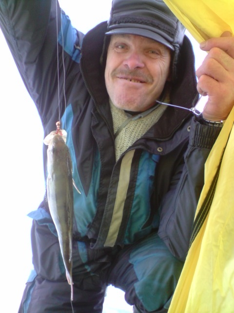 снежное такси доставило на 5.5 км еще по темноте и бригада разошлась по разным направлениям в поисках своих заветных лунок. С утра рыбка была не активной, что подтверждали звонки интересующихся друзей:"Ну чо, клюет?"