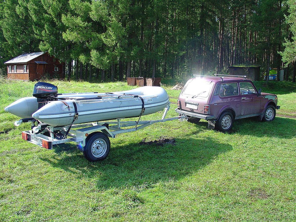 Лодку перевожу обычно на прицепе, который купил из-за того, что осенью, когда мокро и холодно ПВХ лодку хрен сложишь и запихнешь в машину.