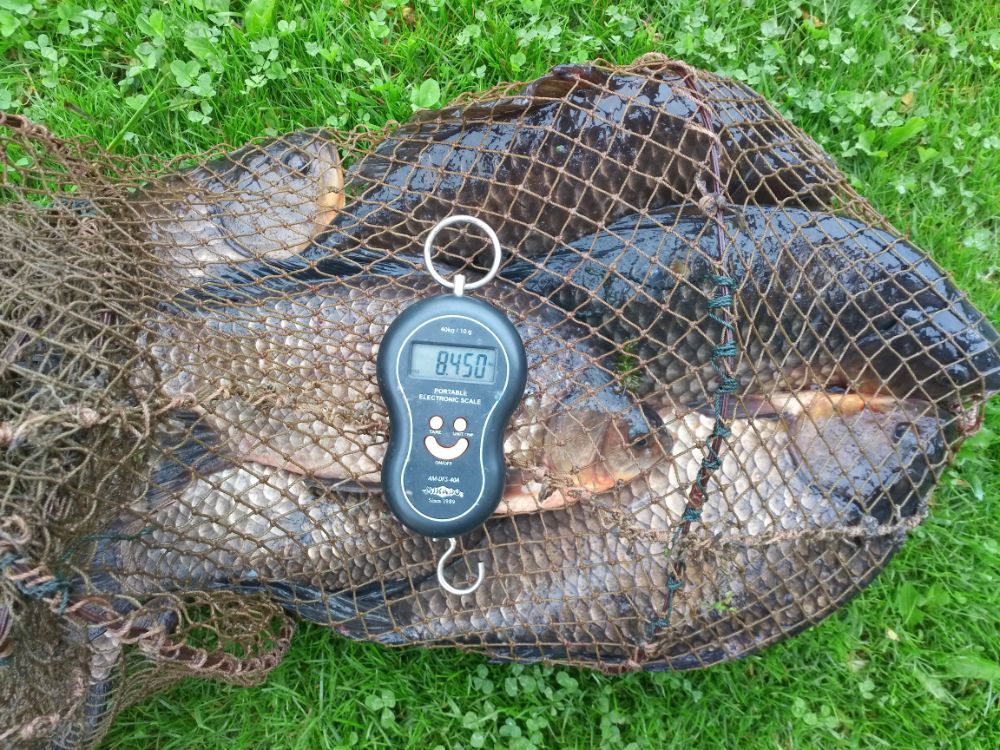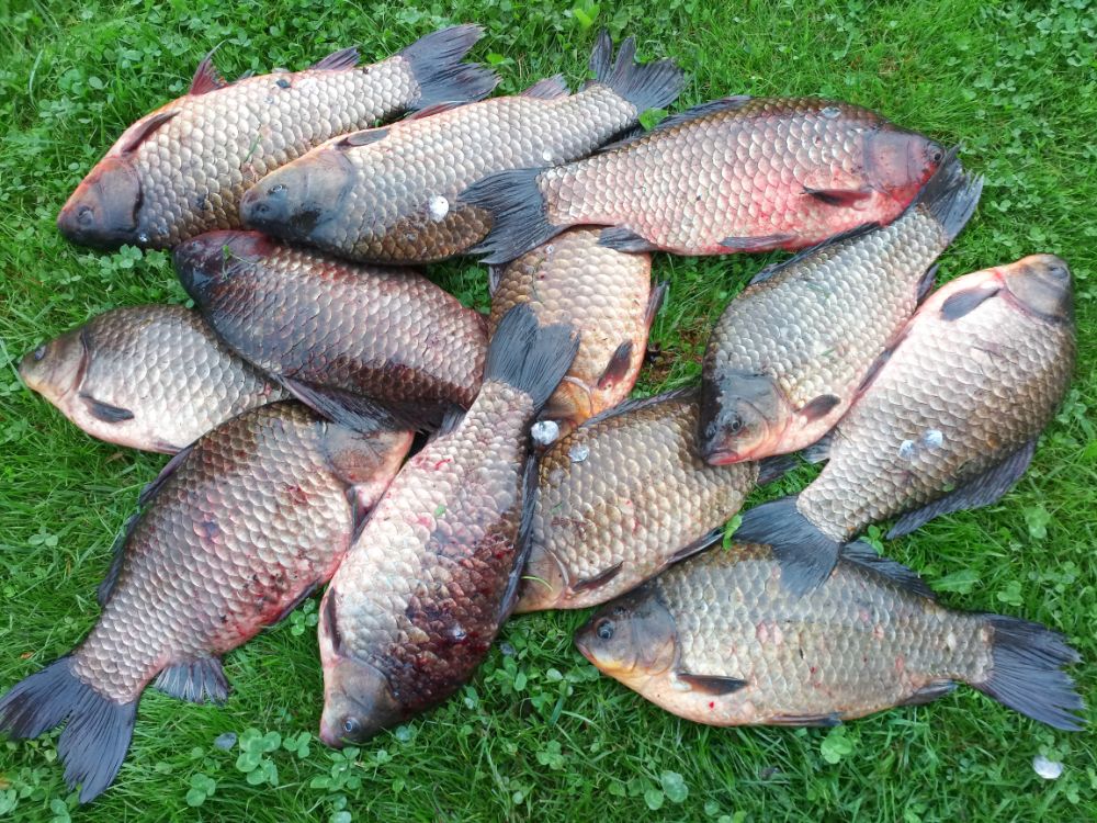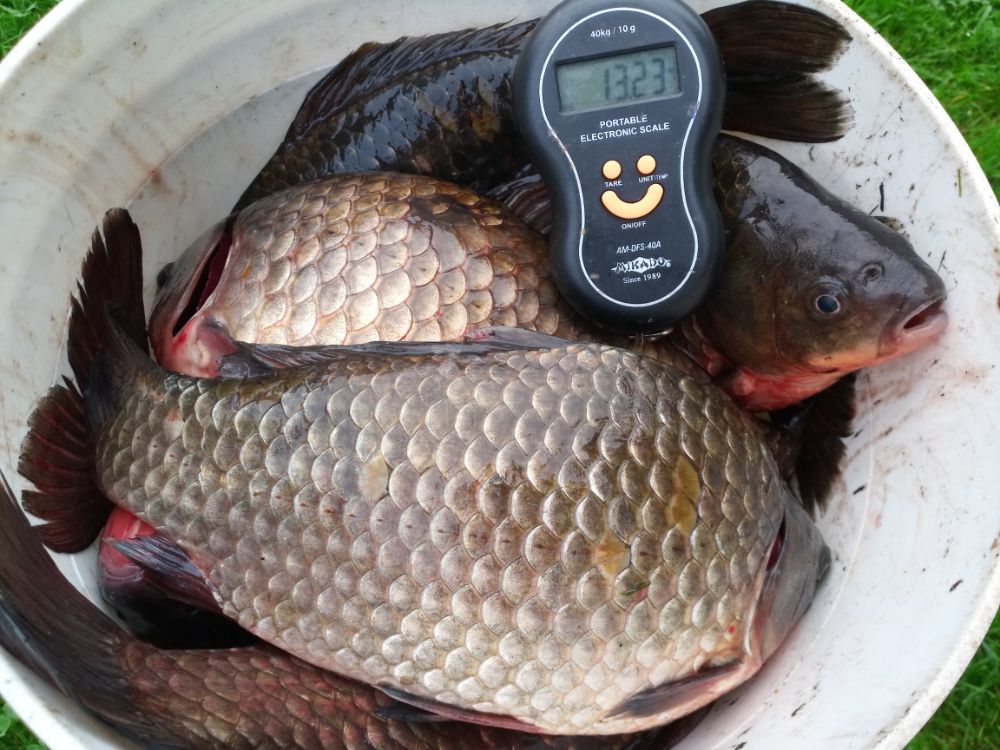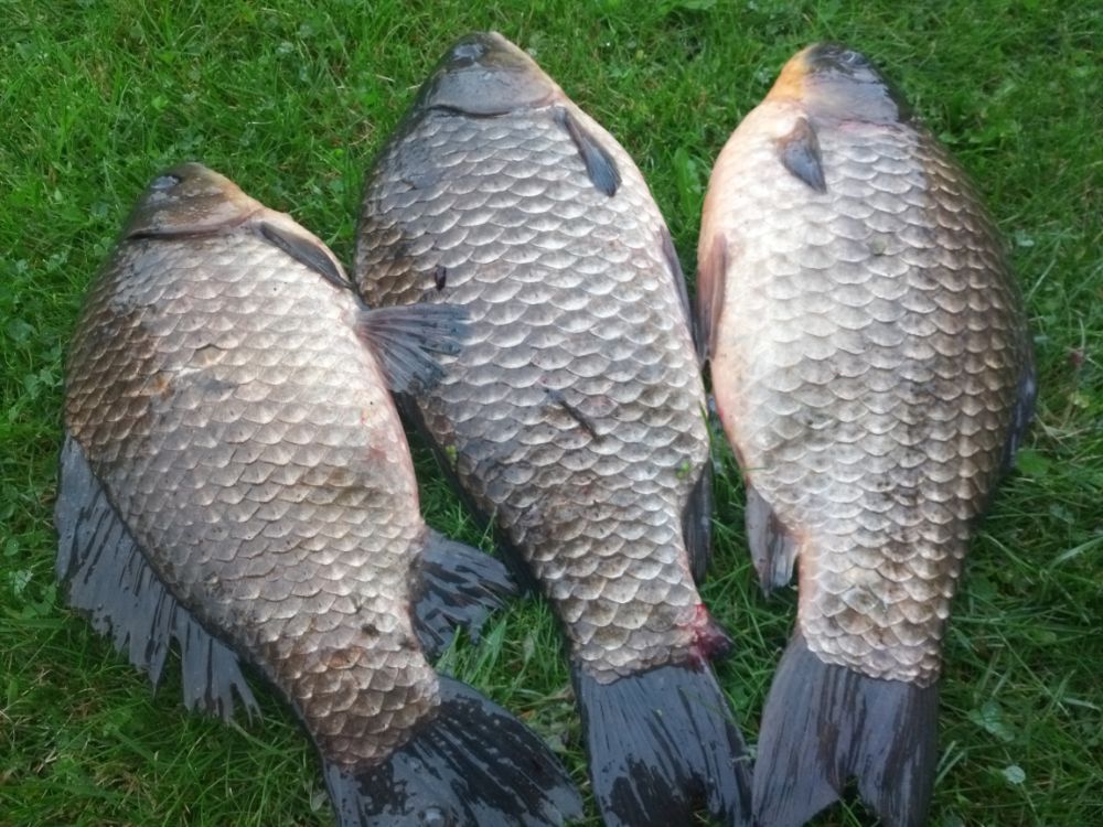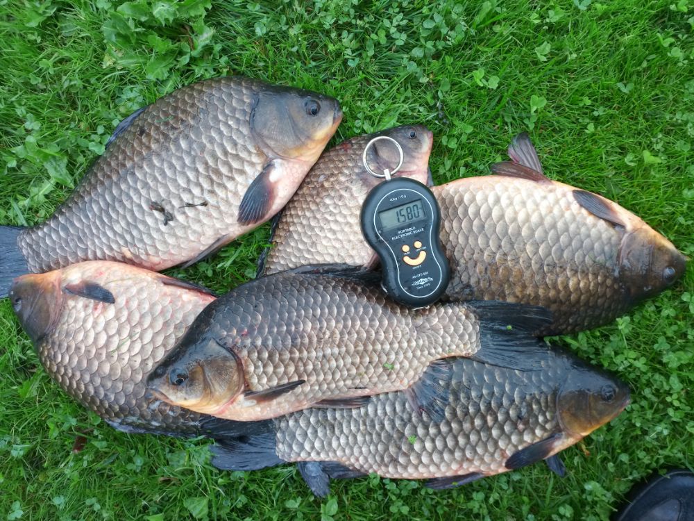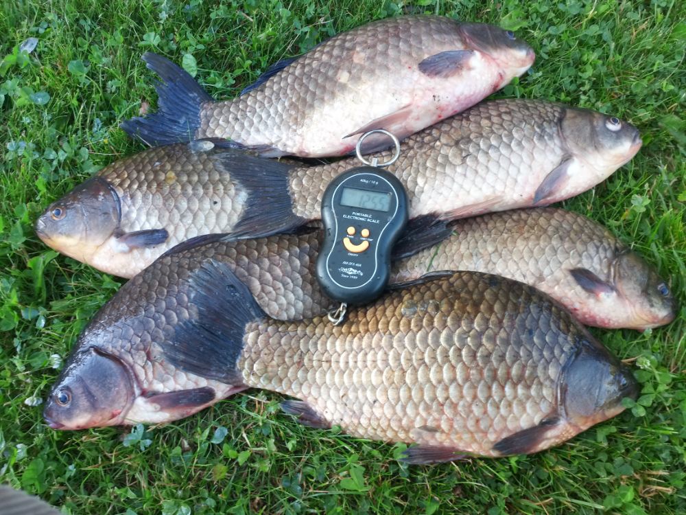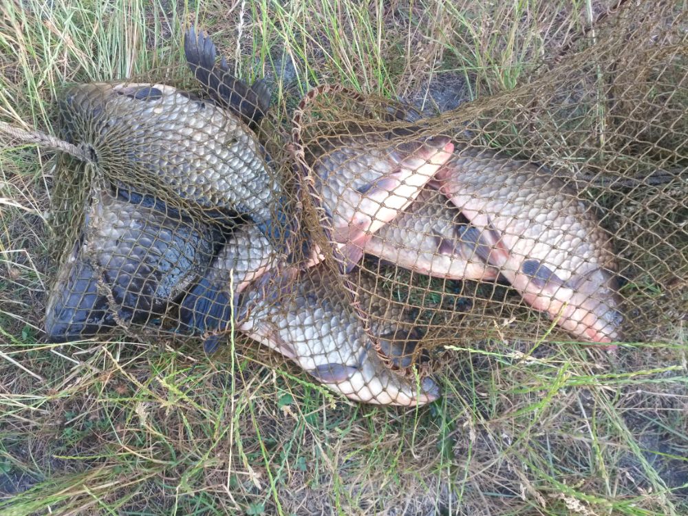 Карасик отозвался довольно быстро. Размер разный. Было весело. Немного поскучнело с часа до четырех. Далее клевало до отъезда. Накидал в садок 24шт. потянувшие в весе 23кг. Два самых красивых по 1.6кг. Домой на копчушку себе и приятелям забрал 10шт. в весе 13кг. Первый блин прошел не комом.....