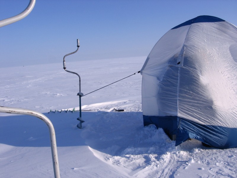 . Погодка тоже соответсвовала - мороз, ветер, метель - в общем тока сидеть в палатке и выдразнивать рыбу.Нашел лунку с где изредка поклевывал окунь - ну и килограмм 5 за день наковырял.