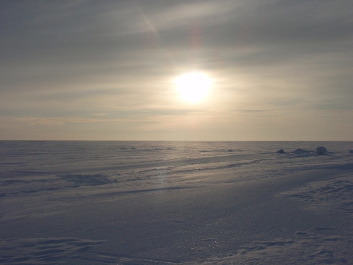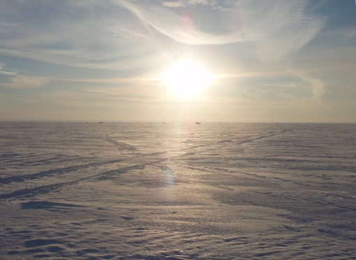 Выезжаем на новую точку, присоединяются знакомые на олроуде, их вперед, дорогу пробивать, мы сзади. Чуть больше часа езды и вот мы на месте. Фил не обманул, вижу его полузанесенные следы. Буримся, Слава по традиции грузит барахло в сани и убегает в горизонт. Подъехал Хейно, посмотрел и уехал к Славе.