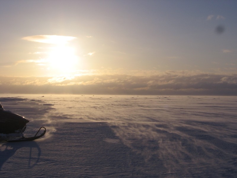 04.03. едем так же на 12 км. Погода чуток лучше. Приехали, пошли искать свою рыбу, один наш товарищ сел на вчерашнюю лунку, поставил палатку и просидел до самого вечера (наловил 17кг.). Я не изменяя железу ищу удачную лунку, в итоге