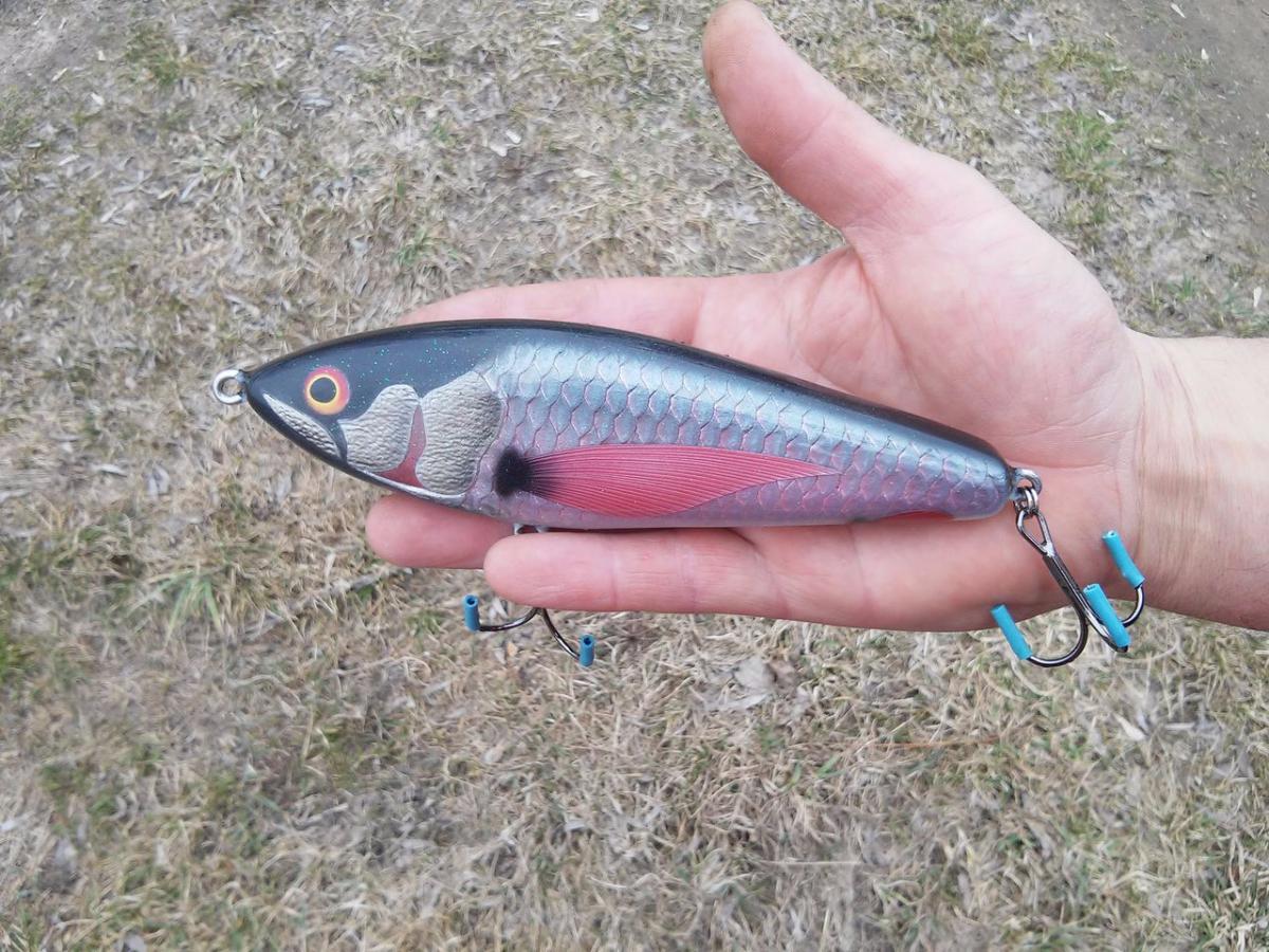 Ещё один лайтовый джерк: липа, 100мм, 43гр без колец и крючков. Ещё пока стараюсь приручить эпоксидку