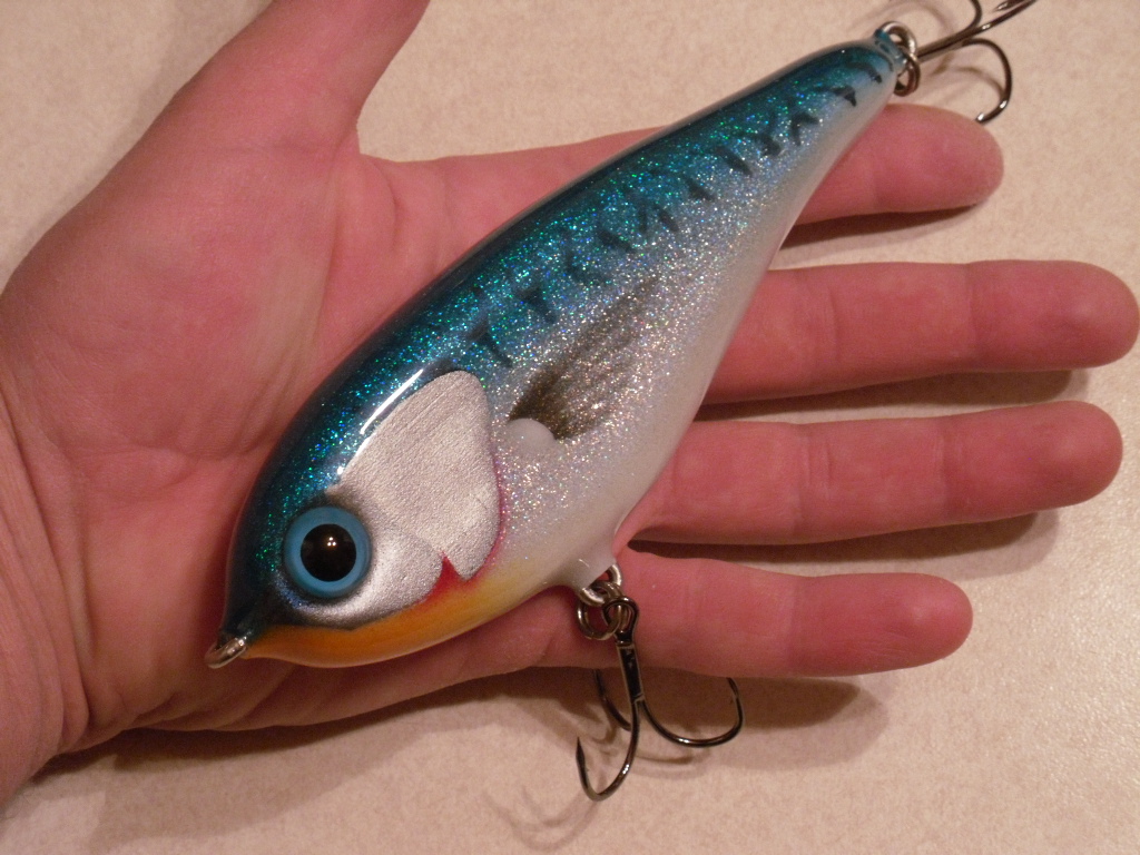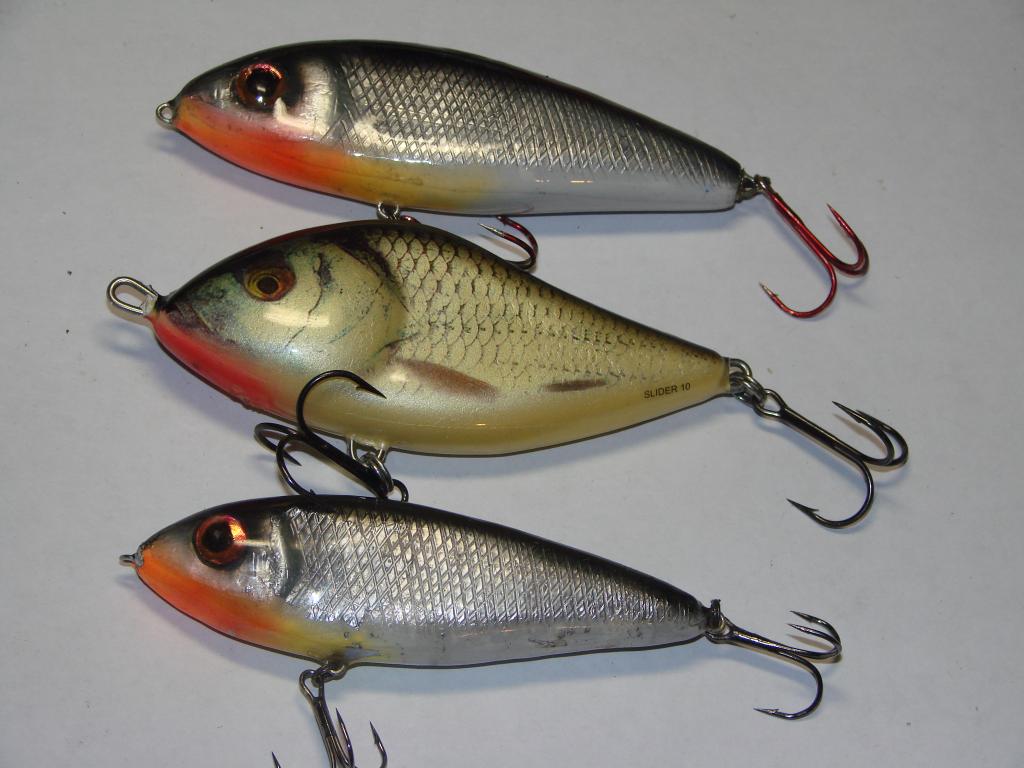 Добрый день коллеги . Вот мой ответ слайдеру от Сальмо , нижний мой фаворит по этому лету, длинна 10 см вес 27 гр ловил обычной палкой до 30 гр катушка заубер 3000