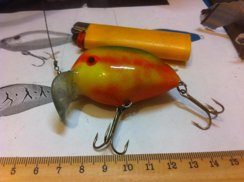Дай ракурс воблера с бока! Есть подозрение на не правильное расположение линии передней - хвостовой петель... И на таком коротком воблере (соотношение длины к ширине)такую лопасть , я б не стал ставить...., у оригинала вроде прямая и короче.? И огрузка у них если не ошибаюсь в головную часть, дифферент в нос. Это ж мелководный - высокочастотник. Но все равно на 90 % его еще можно исправить до приемлемой игры..... например ссузить лопасть , подогнуть (если позволяет длина) , петлю (петли, возможно и хвостовую..), и добавить груз в голову.soulfly писал(а):Дайте замечаний пожлст!