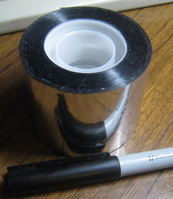 Вчера в строительном маркете я прикупил какой-то чудо скотч, который до этого в продаже не встречал, или м.б. просто не обращал внимания. Кажется похожая хрень но без липкой основы ещё применяется для оформления букетов цветов. Омметром эта штука не прозванивается в отличие от алюминиевого. Тонкий и липкий он до такой степени, что скорее всего можно мух на него ловить.
