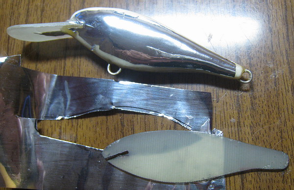 Сегодня попробовал данный скотч на тему перспективы в нашем деле. Предварительно результатами остался доволен. Под алкидно-поуретановым лаком лента начинает блястеть ещё круче (!), но скорее всего лак на нитрооснове его растворит (?). На воблер думаю его можно будет натянуть совсем без складок если боковые полоски делать чуть уже да и правильно приспособится помогая процессу воздухом тёплого фена.