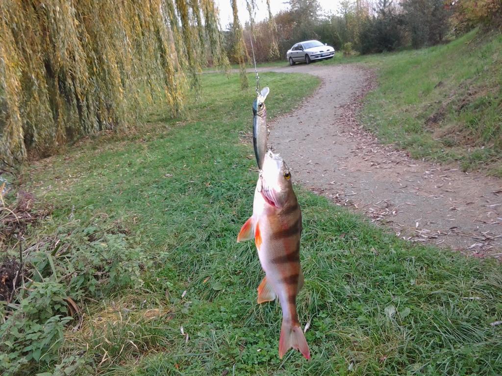 Этот же зеленый соблазнил окуня в другом месте.