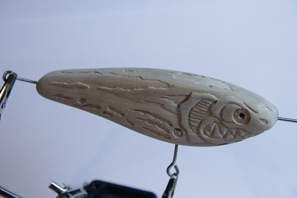 Еще один подповерхностный глайдер-планер , снабжен крыльями из поликарбоната для лучшего удержания горизонта .Материал корпуса ПВХ ,длина 20 см , вес 120 гр , суспендер с небольшой отрицательной плавучестью .